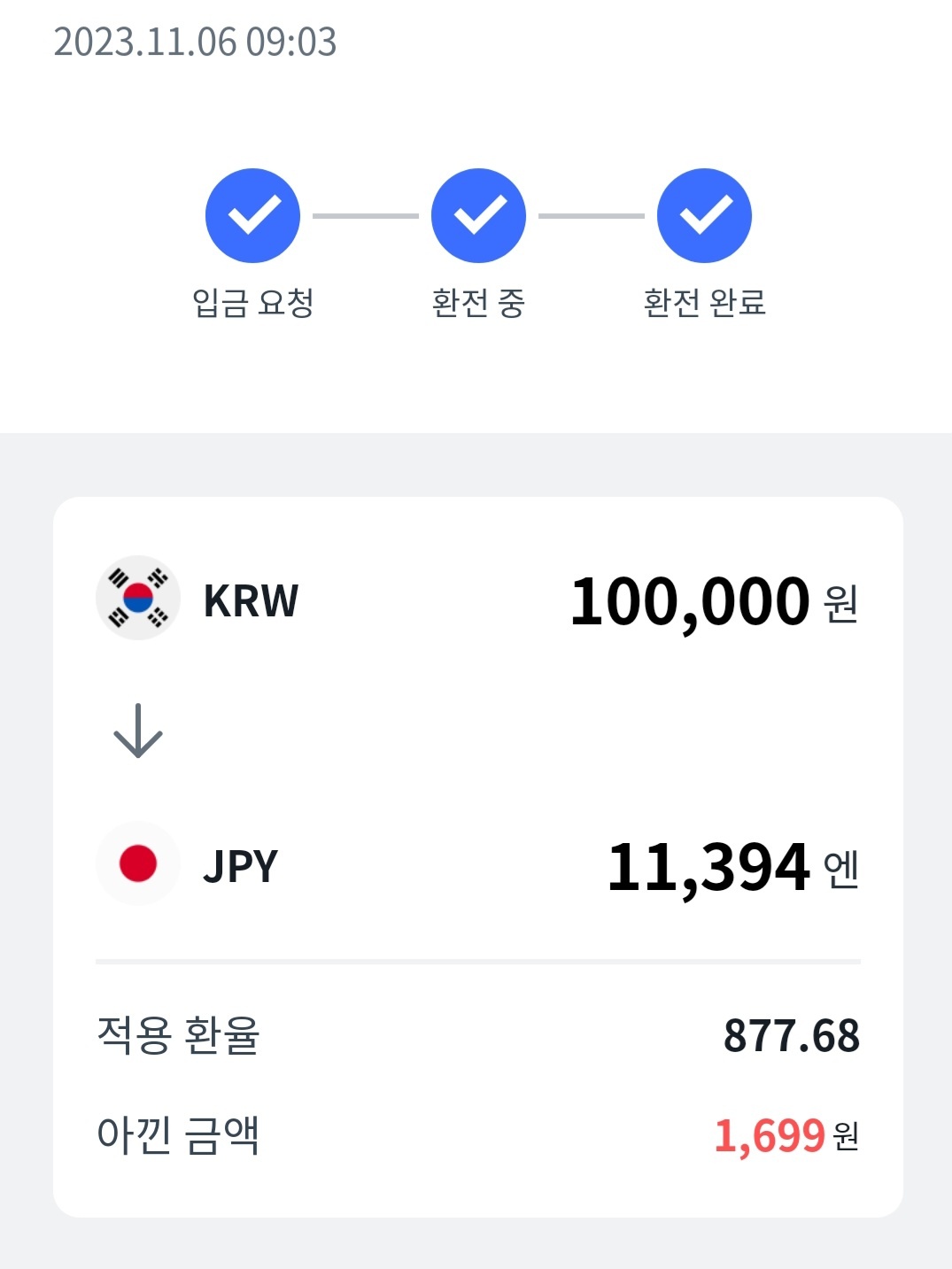 - 엔화 11394엔, 원화 -10만원을 적는다