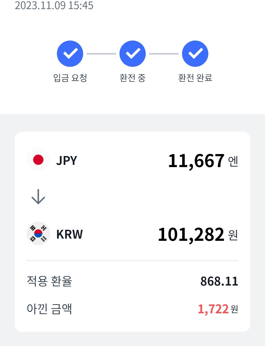 한 15시 30분쯤에 어플을 켜보는 편인데 적용환율이 868.11원 이더군요.