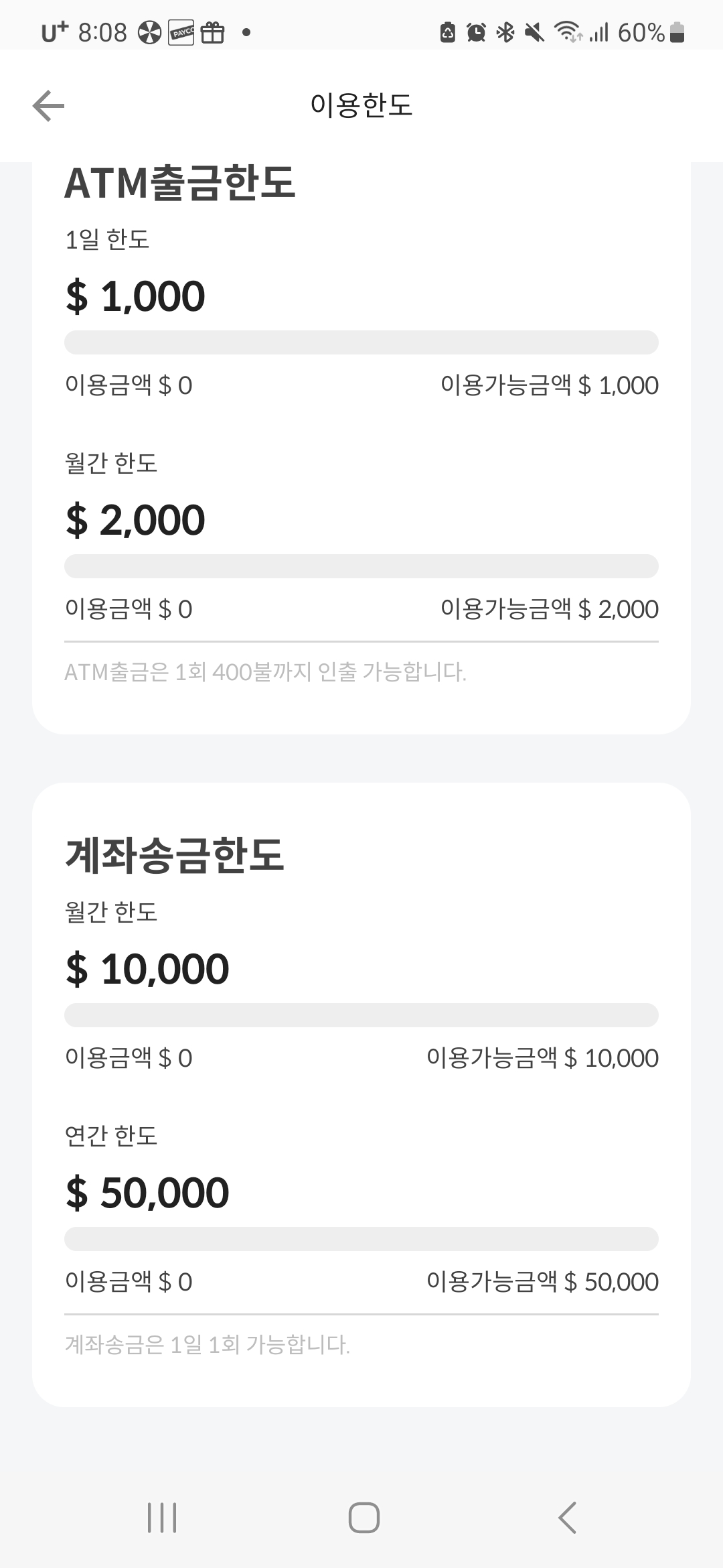계좌로 송금할 수 있는건 연간 5천 달러 정도네요.